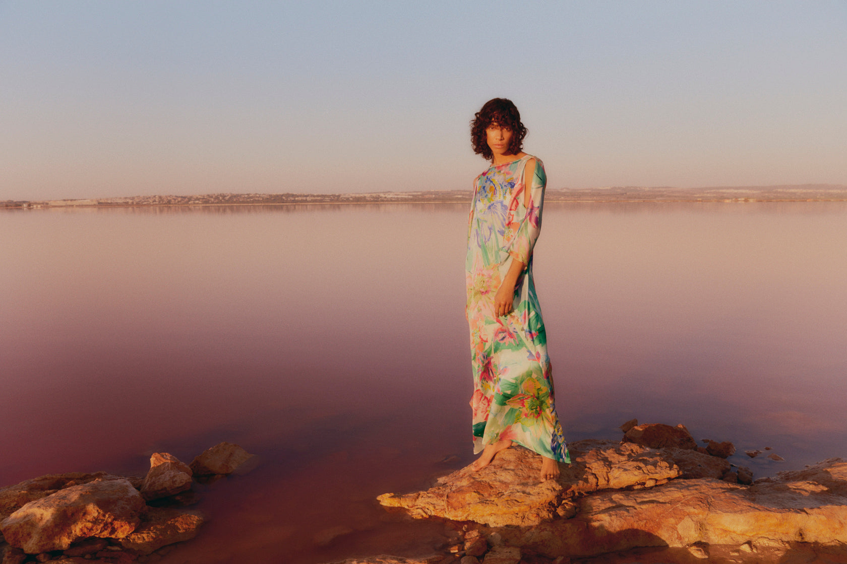 Die Farbpalette ist überschwänglich und aufmunternd mit tropischen Schattierungen von Korallenrosa, Mandarin, Angelikagrün und Ozeanblau, die sich gegen neutrale Farben von Schwarz, weißem Sand und Champagner abheben. Drucke, die die Mayanische Umgebung widerspiegeln, vor allem in einem kühnen Holzdruck-inspirierten Design von Papaya- und Guavenfrüchten oder in riesigen handgemalten Blumen in hellen oder Pastellversionen. Die minimalistische Architektur des Tulum wird in einem Op Art-Grafikdruck referenziert, während die Schönheit von Korallen in einem kühnen abstrakten Muster eingefangen wird. Dea Kudibals charakteristische Seide steht, wie immer, im Mittelpunkt, aber federleichtes Krepp-Georgette ist genau das Richtige für laue Abende und Leinen sorgt für eine willkommene Textur, die angenehm kühl ist.