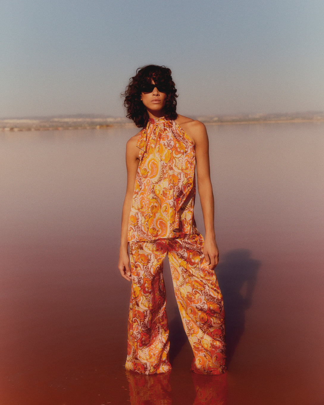 Ein Gefühl von Leichtigkeit durchzieht die Kollektion mit weiten, fließenden Silhouetten, die Opulenz verkünden oder mit schlankeren, die weibliche Figur betonenden Formen. Offene Rücken, nackte Schultern und bauchfreie Oberteile bieten reichlich Möglichkeiten, ein wenig sonnenverwöhnte Haut zu zeigen. Vielseitigkeit ist der Schlüssel: Ein riesiges Quadratkleid kann frei wehen oder auf vielfältige Weise am Körper drapiert werden, während schlankere Kleider mit Quastenbändern versehen sind, um die Taille zu betonen. Elastik wird an Manschetten und Ausschnitten verwendet, die hoch- oder runtergezogen werden können, wenn Sie sich vom Strand zur Bar bewegen. Seidige Shorts und weite Hosen haben denselben breiten Gummizug, um einen sportlich-glamourösen Look zu verleihen, besonders wenn sie mit einem super weiten Hemd kombiniert werden, das elegant fällt.