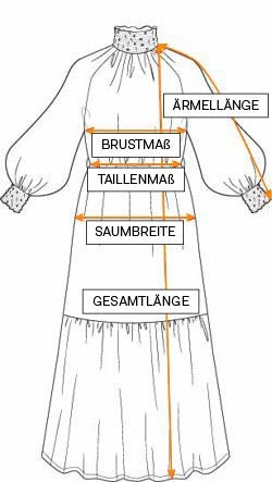 Die Illustration zeigt die Maße dieses Stils im flach liegenden Zustand. Um die richtige Größe für dich zu finden, kannst du diese Maße mit einem ähnlichen Kleidungsstück in deiner Garderobe vergleichen, das dir gut passt. Aufgrund des Produktionsprozesses kann es zu kleinen Abweichungen bei den Maßen kommen.