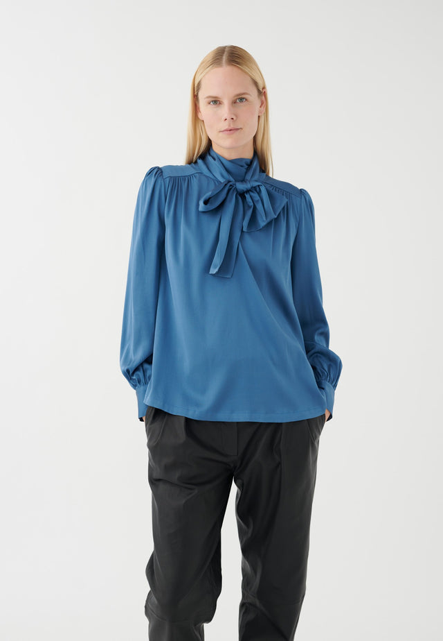 Ein Dea Kudibal-Klassiker, diese raffinierte Seidenbluse hat ein Schaltuch am Kragen, das zu einer Schleife gebunden oder locker gelassen werden kann. Das Kornblumenblau schmeichelt der Haut und passt gut für den Tag oder Abend.