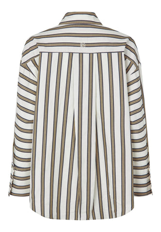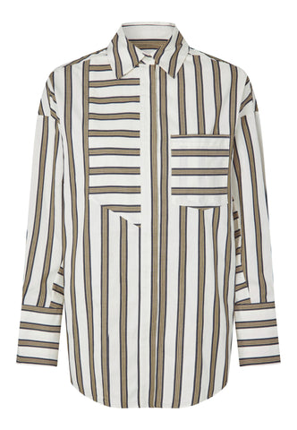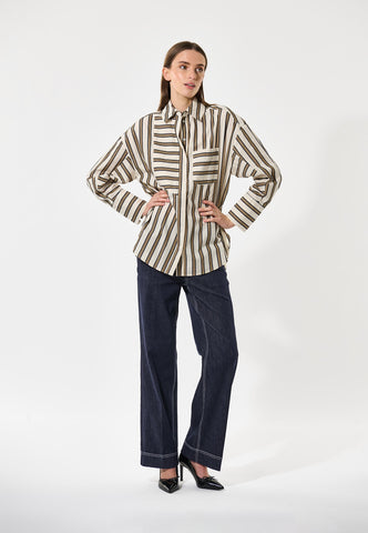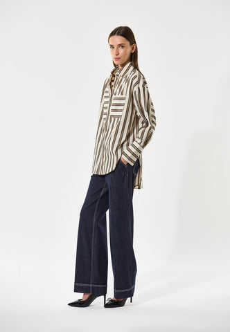 Dieses lässige Oversize-Hemd aus Baumwolle mit kräftigen Streifen bietet entspannten Stil. Klassischer Kragen, tiefe Manschetten, halber Latz und horizontale Einsätze sorgen für grafischen Reiz. Die verdeckte Knopfleiste rundet das Design ab.