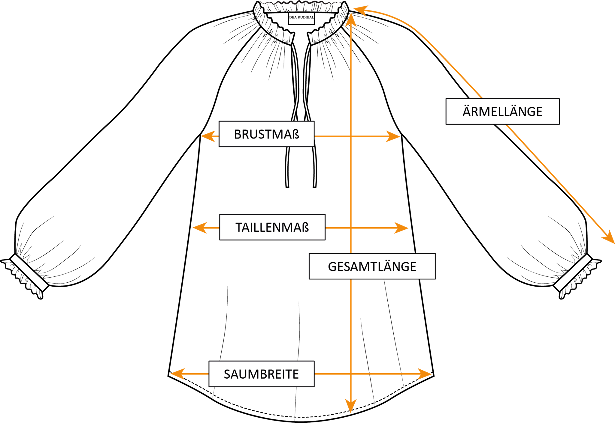 Die Illustration zeigt die Maße dieses Stils im flach liegenden Zustand. Um die richtige Größe für dich zu finden, kannst du diese Maße mit einem ähnlichen Kleidungsstück in deiner Garderobe vergleichen, das dir gut passt. Aufgrund des Produktionsprozesses kann es zu kleinen Abweichungen bei den Maßen kommen.