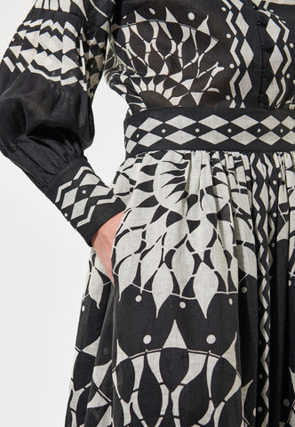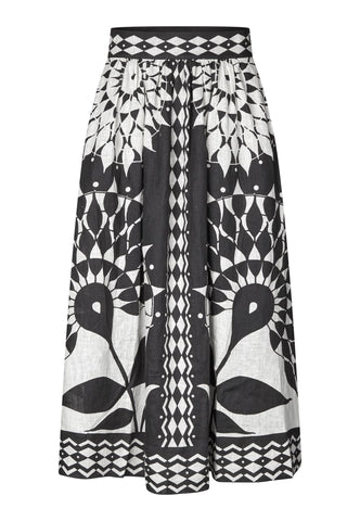 Dieser weit geschnittene Rock ist angenehm zu tragen und bietet entspannten Komfort. Winzige Biesen formen den Bund, der locker bis zum Knöchel fällt. Aus frischer blauer Baumwolle mit durchgehender Blumen- und Paisleystickerei. Mit Taschen und Reißverschluss.