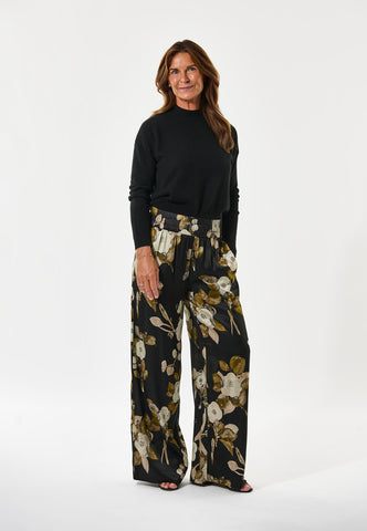 Hosen aus Seide mit weitem Bein verkörpern klassischen Chic. Diese Variante mit floralem Print und elastischem Bund überzeugt durch Komfort und Stil. Perfekt zu schlichten Oberteilen oder edlem Strick für ein besonders elegantes Outfit.