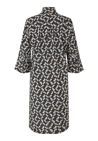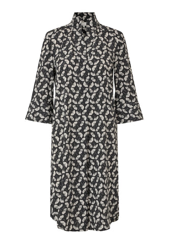 Dieses locker geschnittene Midikleid zählt zu den Favoriten von Dea Kudibal. Der Kimono-Ausschnitt und -Kragen verleihen ihm elegante Raffinesse, während die tief angesetzten Ärmel mit Überziehknöpfen für einen entspannten Look sorgen. Hier in Seide mit zartem Ginkgoblatt-Print.