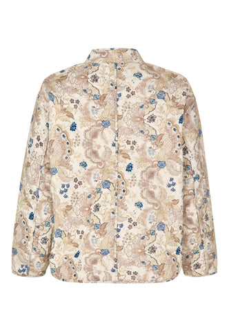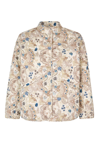 Kuschelig und zugleich sehr stilvoll: Diese gesteppte Baumwolljacke ist perfekt für kühle Frühlingstage. Mit exotischen Blumen in neutralen Farbtönen bedruckt, hat sie einen Stehkragen mit Mehrfachsteppung, eine Einfassung entlang der Kanten und zwei Leistentaschen vorne. Sie ist kurz geschnitten, hat 3/4-Ärmel und wird mit stoffbezogenen Druckknöpfen geschlossen.