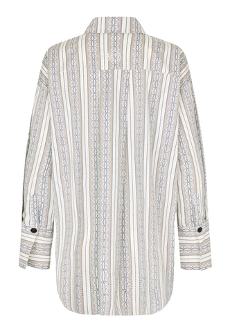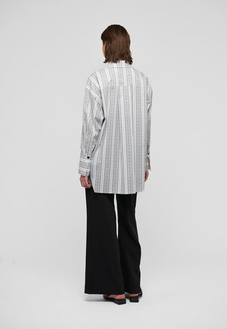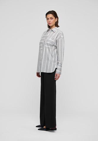 Oversized und lässig in der Ausstrahlung: Dieses Baumwollhemd in bequemer Passform mit auffälligen dekorativen Streifen hat einen klassischen Kragen und tiefe Manschetten. Eine halbe Brustpasse und die Brusttasche sind horizontal geschnitten und geben dem Hemd einen grafischen Twist. Geschlossen wird es vorne mit einer verdeckten Knopfleiste, die die Knöpfe verbirgt.