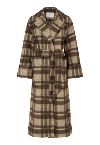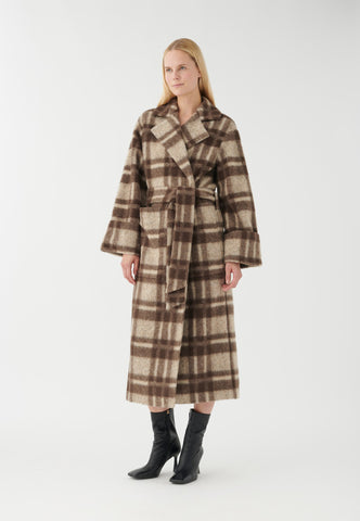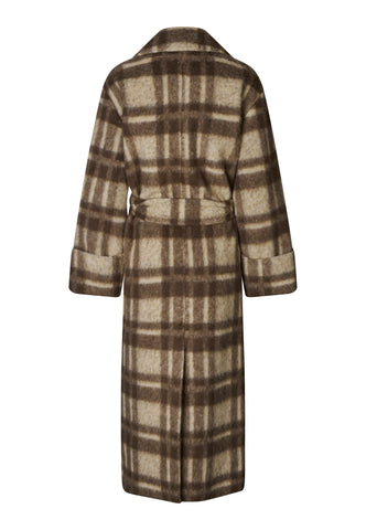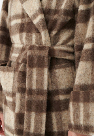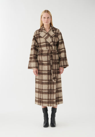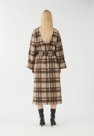 Mit einem kühlen, klassischen Charme ist dieser Wickelmantel mit Bindegürtel und großen Taschen perfekt für kaltes Wetter. Das kräftige Karomuster in einer Mischung aus Wolle und Alpaka sorgt sowohl für Wärme als auch für Eleganz.