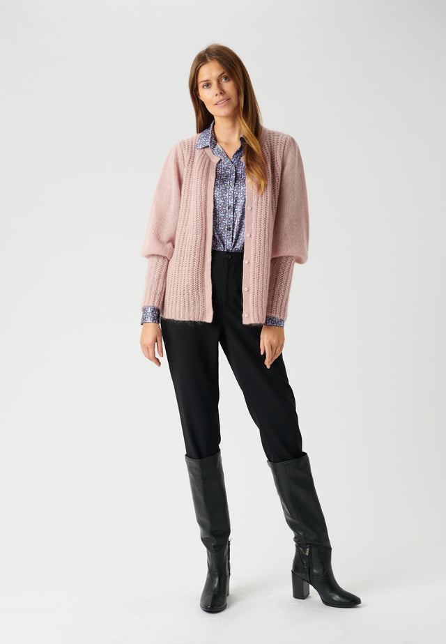 Cardigan mit hohen Manschetten, Ballonärmeln und stoffbezogenen Druckknöpfen