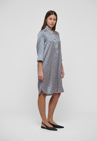 Einer der beliebtesten Styles von Dea Kudibal: Dieses Kleid in lockerer Passform und Wadenlänge passt zu jeder Figur. Kimono-Ausschnitt und Kragen wirken sophisticated, während die tiefen Ärmel mit stoffbezogenen Knöpfen lässig bleiben. Diese chic Variante kommt aus Seidentwill mit subtilen Grafikprint.