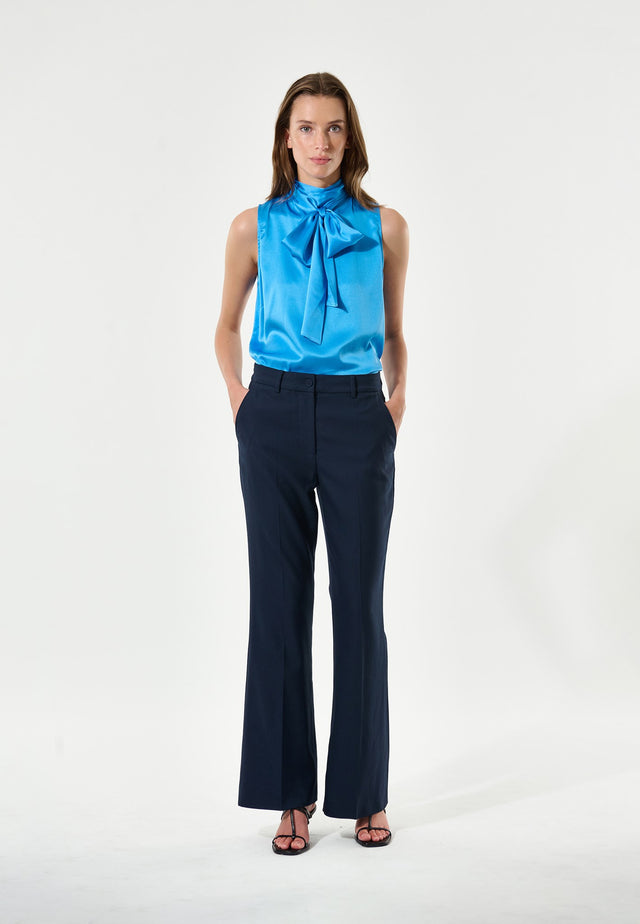 In Mitternachtsblauem Wollmix sind diese Bootcut-Hosen eine vielseitige und stilvolle Option für jeden Anlass. Sie haben eine reguläre Passform mit Seitentaschen und einer Gesäßtasche mit bezogenem Knopf.